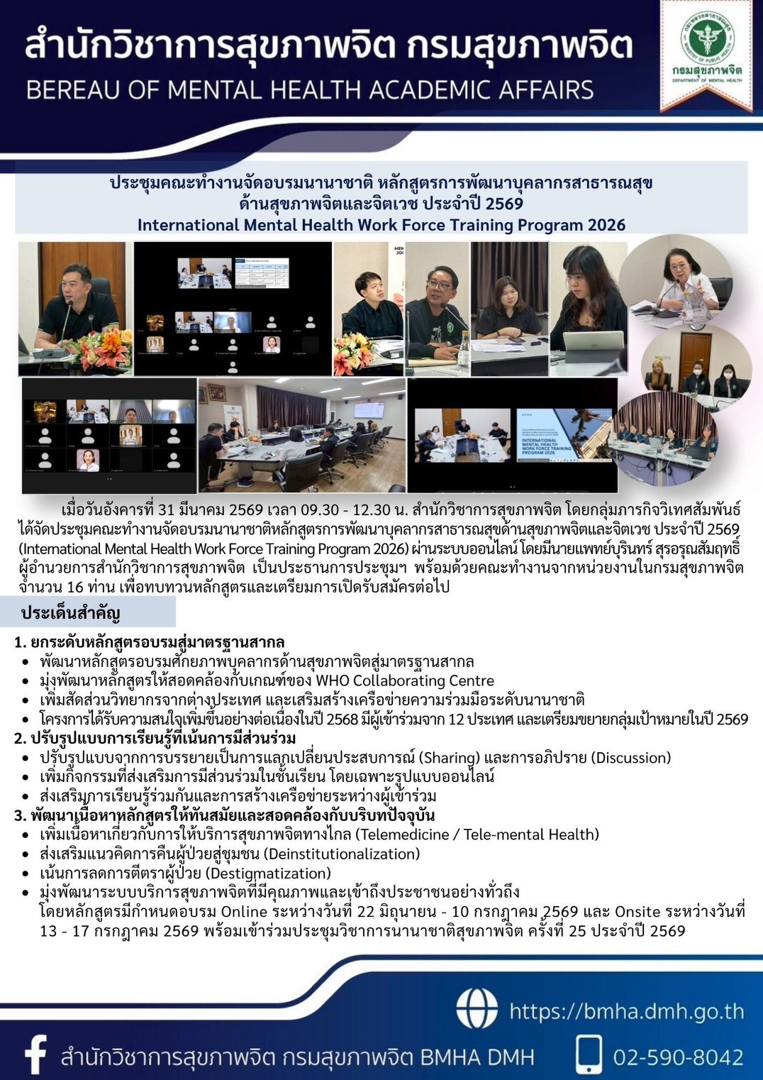 รัฐบาลสาธารณรัฐอินเดียเสนอให้ทุนแก่รัฐบาลไทยเพื่อส่งเจ้าหน้าที่เข้าร่วมการฝึกอบรม ภายใต้ Indian Technical & Economic Cooperation (ITEC) Programme หลักสูตร Drug De-Addiction and Rehablitation for Health Workers ระหว่างวันที่ 4 - 17 มีนาคม 2569 ณ สาธารณรัฐอินเดีย