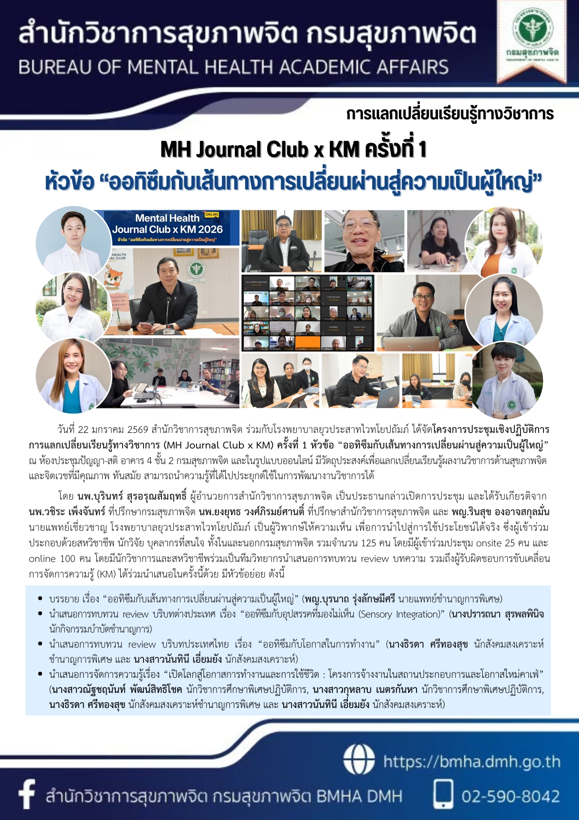 MH Journal Club x KM ครั้งที่ 1 หัวข้อ "ออทิซึมกับเส้นทางการเปลี่ยนผ่านสู่ความเป็นผู้ใหญ่"