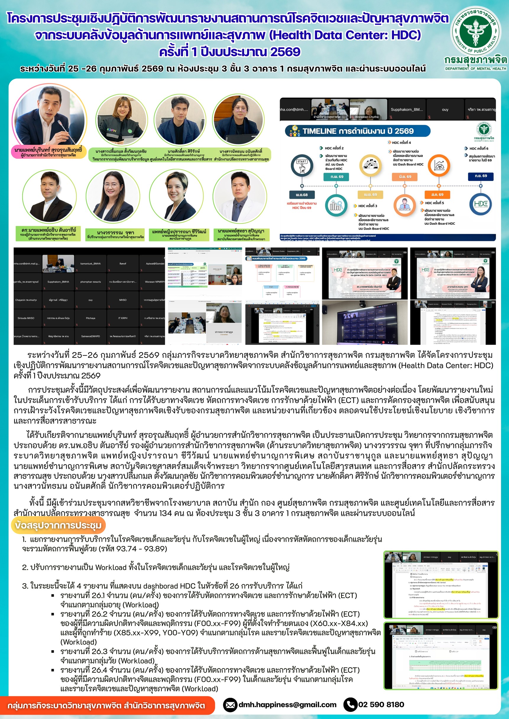 โครงการประชุมเชิงปฏิบัติการพัฒนารายงานสถานการณ์โรคจิตเวชและปัญหาสุขภาพจิต จากระบบคลังข้อมูลด้านการแพทย์และสุขภาพ (Health Data Center: HDC) ครั้งที่ 1 ปีงบประมาณ 2569